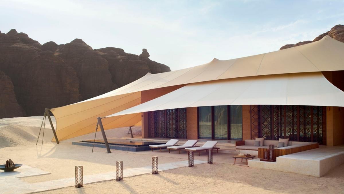 我们的双卧泳池别墅专为四位客人设计,打造了一个与周围自然和谐相处的环境。 每间138平方米的别墅都有高高的天花板,并配有阿拉伯风格的家具、美丽的灯具和帐篷遮盖,以融入景观中。