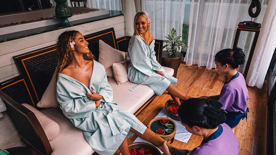 享负盛名的悦榕Spa推出的创新服务,如天降甘霖般令全身舒爽顺畅。提神解乏的美体磨砂,继以柔和绵密的沐浴润肤。护疗师以精妙绝伦的指间技艺驱散疲劳,带来前所未有的身心放松体验。