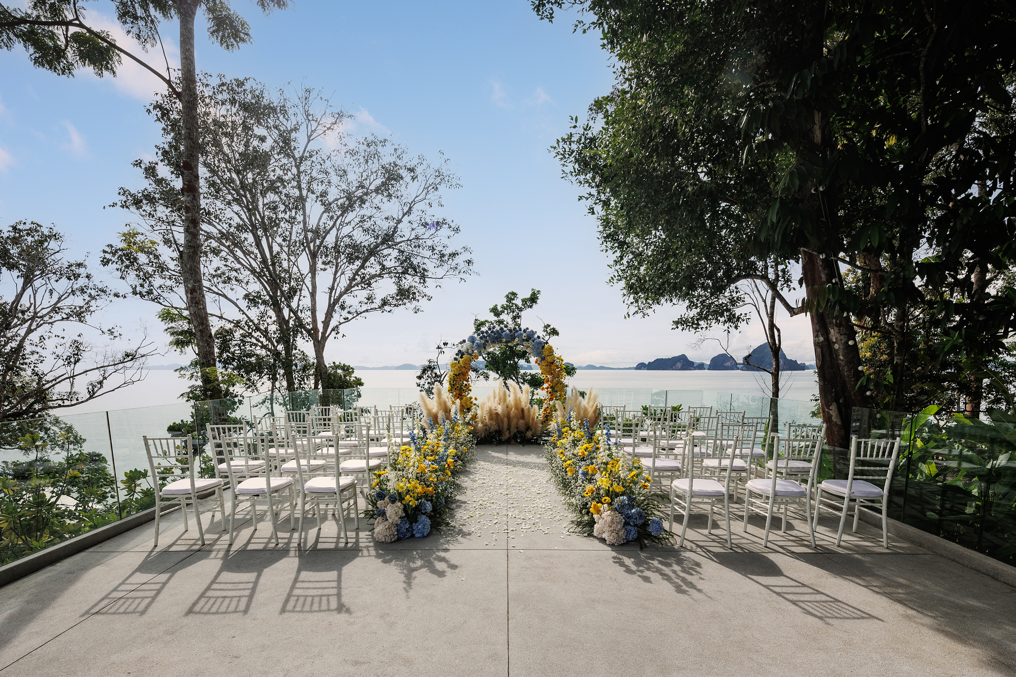 안다만해를 배경으로 점점이 이어지는 독특한 라임스톤 카르스트 지형을 강조하는, 분위기 있는 결혼식을 위한 완벽한 장소입니다. 이 열대 낙원의 장엄한 풍경 속에서 특별한 분위기의 꿈의 결혼식을 맞이하세요.