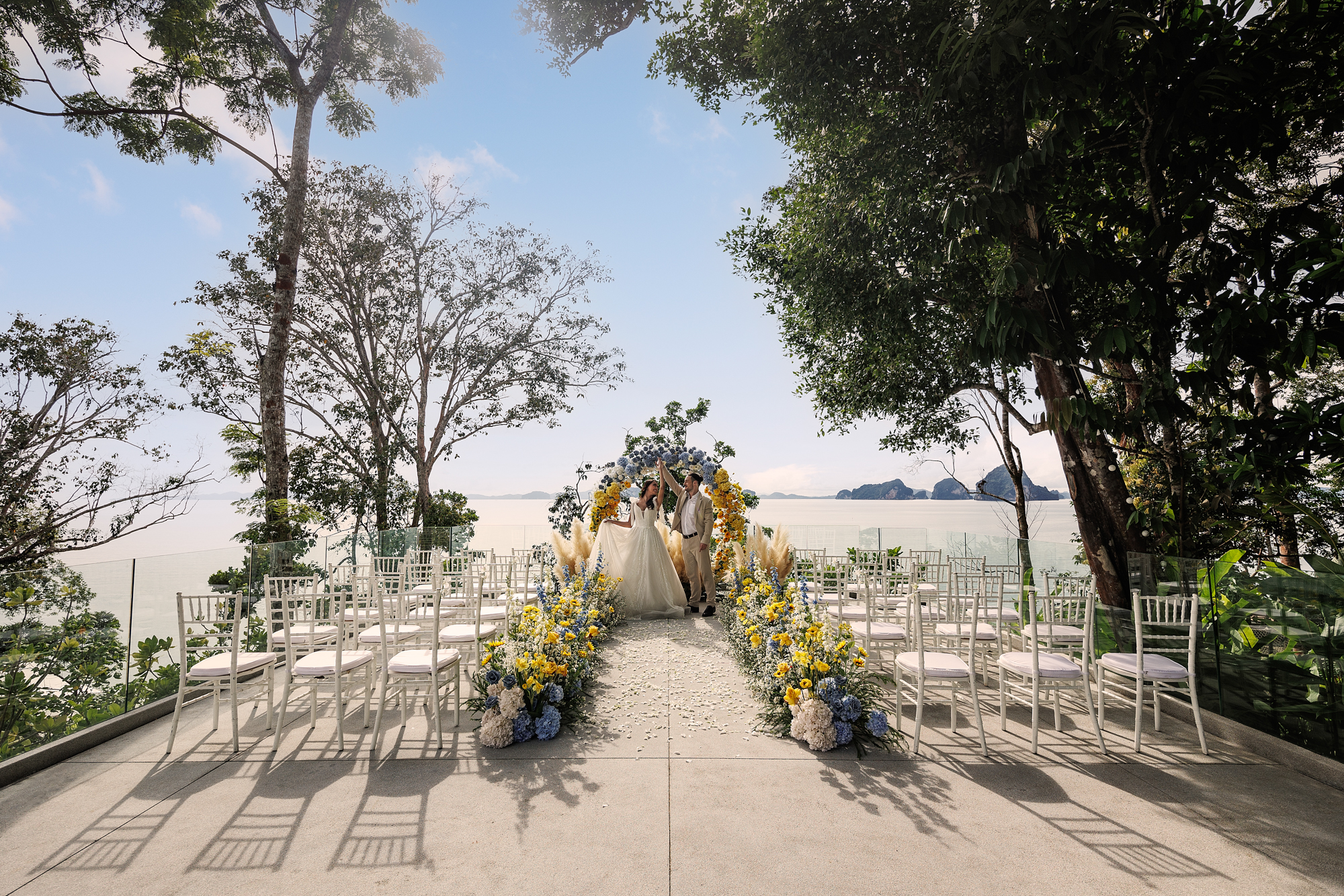안다만해를 배경으로 한 로맨틱한 결혼식에서 언약을 맺어보세요.