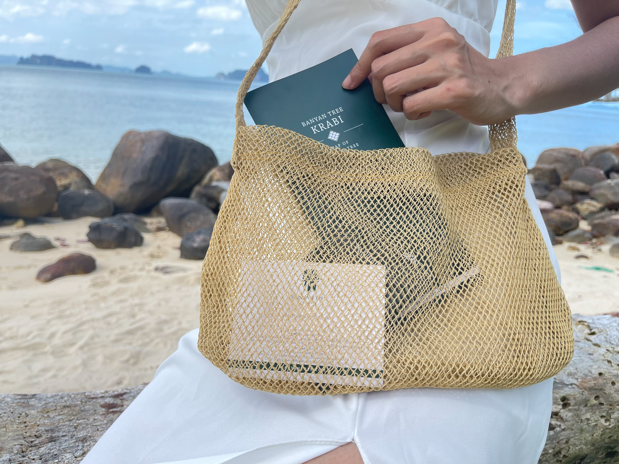As part of our efforts to operate in a sustainable manner as well as to support the community in which we operate, our team connected with local artisans from Souvenirs from the Sea to create a bag for guests' use during their stay which has been made entirely from upcycled waste that washed up on beaches in the Krabi area.